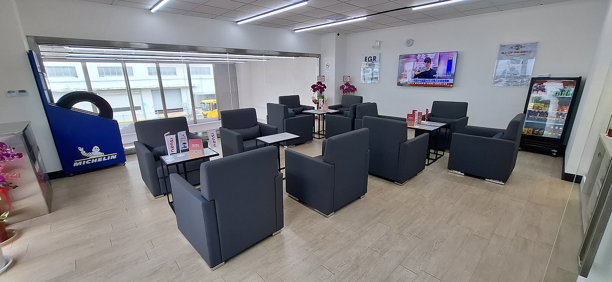 位於二樓的客戶休息區,在維修期間提供客戶明亮舒適的環境。