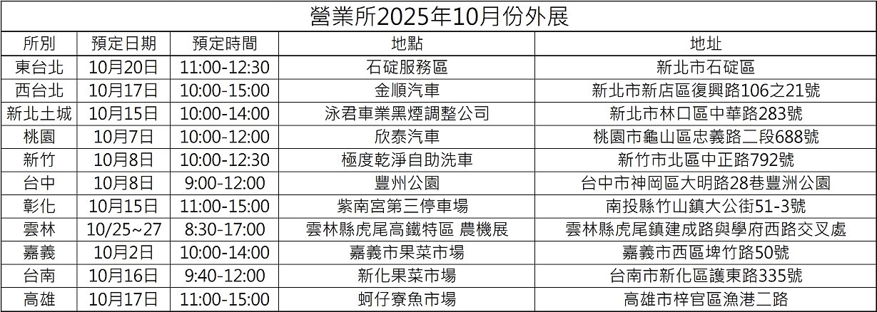 10月份戶外展售會活動場次公告: