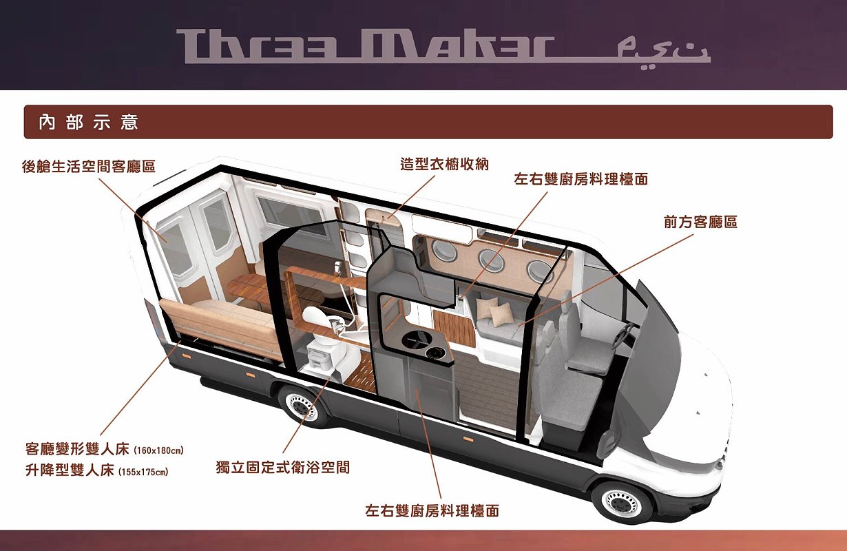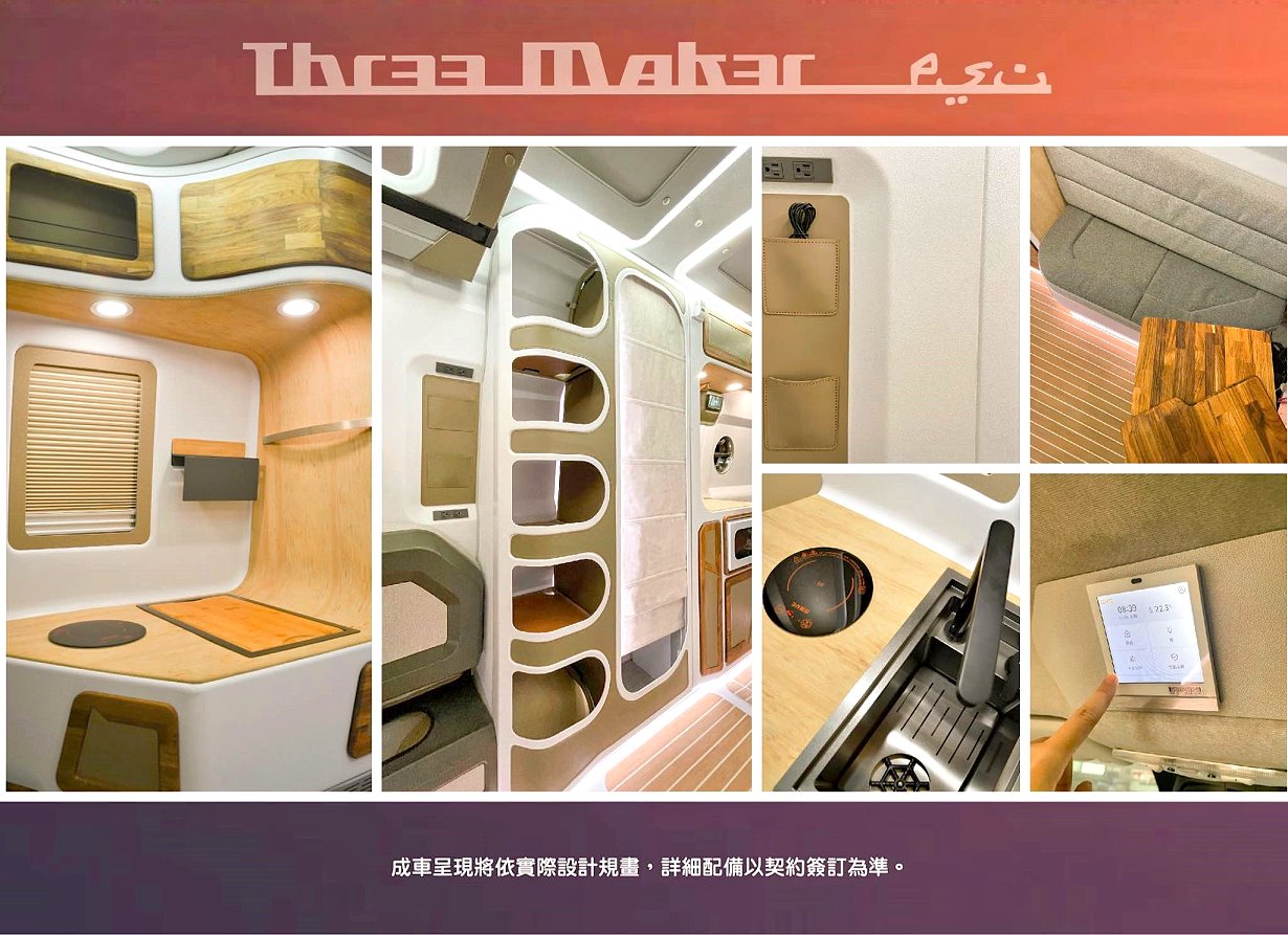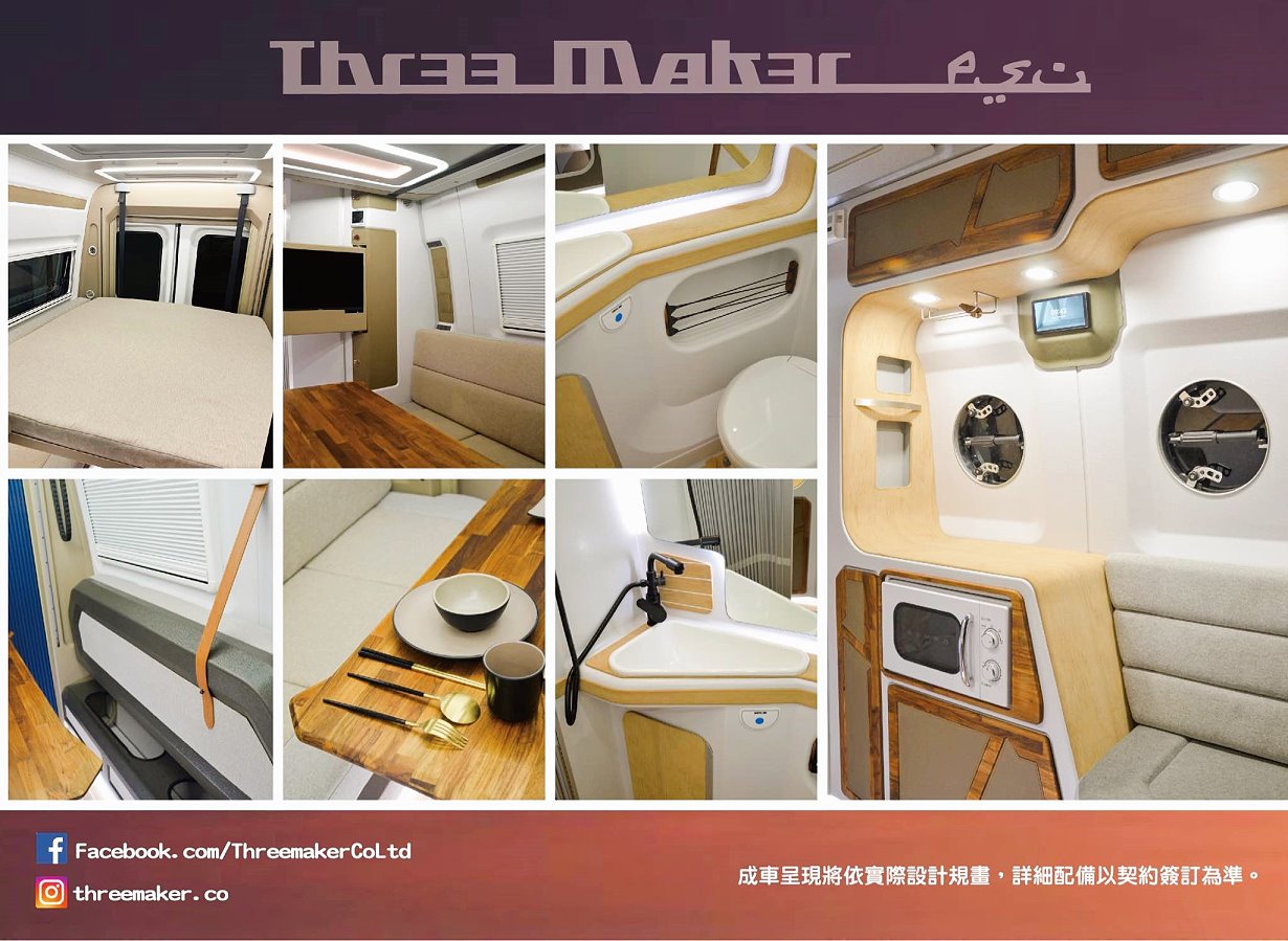 另外,匠作職人魏先生認為,國內目前的半成品露營車市場,多數都以客戶客製化需求為主,但若要讓客人增購作為日常或甚至租賃使用,回歸車輛本質對於主被動/動態安全防護、行車操控表現與乘坐品質等,仍須回歸到核心需求與目的性---也就是他希望推廣、甚至外銷至全球的【汽車工藝模組成型】技術,這樣不僅可以讓車廠/車體業者可以輕鬆完裝,同時也可以讓完成品與原車更契合,所以「敏مين -Min」的發表,對「Three-Maker三作藏品製作所」挑戰市場有相當重要的意涵,採用與國際車廠一致的標準化輕量化、高強度、高密合度模組,才能夠讓各種裝備與車輛更融為一體,無論是各種休憩起居、廚房衛浴、衣物收納、控制模組...,甚至是台灣人要求最高的變頻空調等等,無論是穩定性、安全性、性能表現都必須向家居水準看齊。