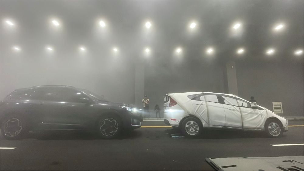 「天候環境隧道測試區」可呈現降雨、濃霧、日照與逆光等多元天候,讓ADAS輔助駕駛功能在大雨或濃霧下進行偵測與反應測試。