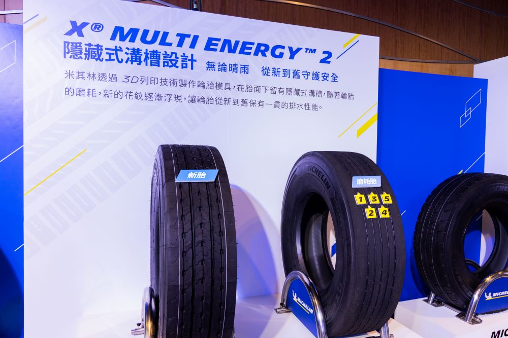 米其林從2018年一口氣在台灣發表八條商用車大胎後,積極溝通車隊使用米其林大胎的種種優勢,已目前主力堆廣的 X® MULTI ENERGY™ 2 ,在產品設計上,結合多項專利或技術概念,目的在同時提升耐磨里程、濕地抓地與低滾動阻力,以大幅提升行車安全: