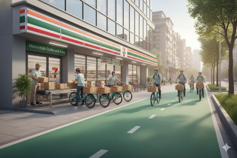 1.物流微型集散中心(Microhubs):通常小於 2,000 m²,用於轉運、整合貨物,並促進從大型卡車到小型電動車或 貨運腳踏車 的轉移。