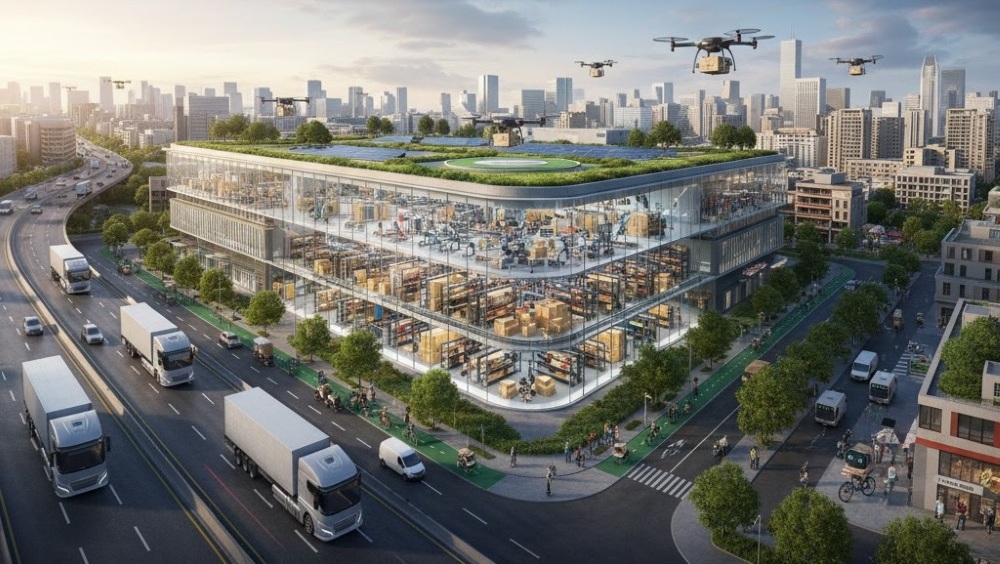 倉儲設置在城市物流中演變為 城市物流樞紐(Urban Logistics Hubs, ULH),是優化最後一哩路配送和促進零排放轉型的關鍵節點。由於市中心房地產成本高昂和空間稀缺,傳統大型物流設施傾向於遷往郊區,造成 物流外移(Logistics Sprawl),這反而增加了運輸距離和碳排放。