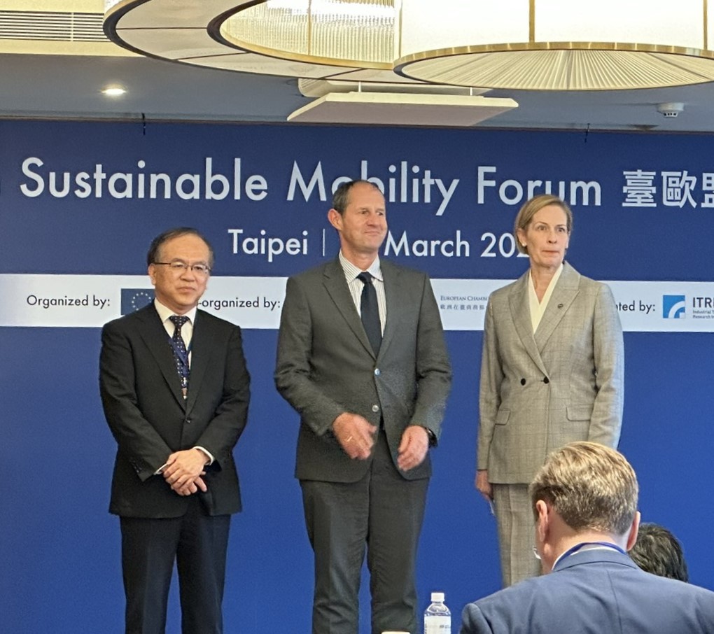 開幕由歐洲經貿辦事處處長Lutz Güllner、交通部政務次長陳彥伯,以及歐洲在臺商務協會理事長Tina Graves共同致詞。交通部次長陳彥伯指出,在全球淨零排放趨勢推動下,交通運輸已成為各國減碳戰略中的核心領域。在台灣推動的十二項關鍵戰略下目前還針對商用車提出計程車轉換新能源補助等旗艦企劃。歐洲商會理事長則提到載具轉換新能源的不易,而台灣與歐盟在政策制度與技術發展上具備高度互補性,透過制度接軌與產業合作,有望加速推動低碳運輸轉型。