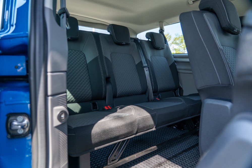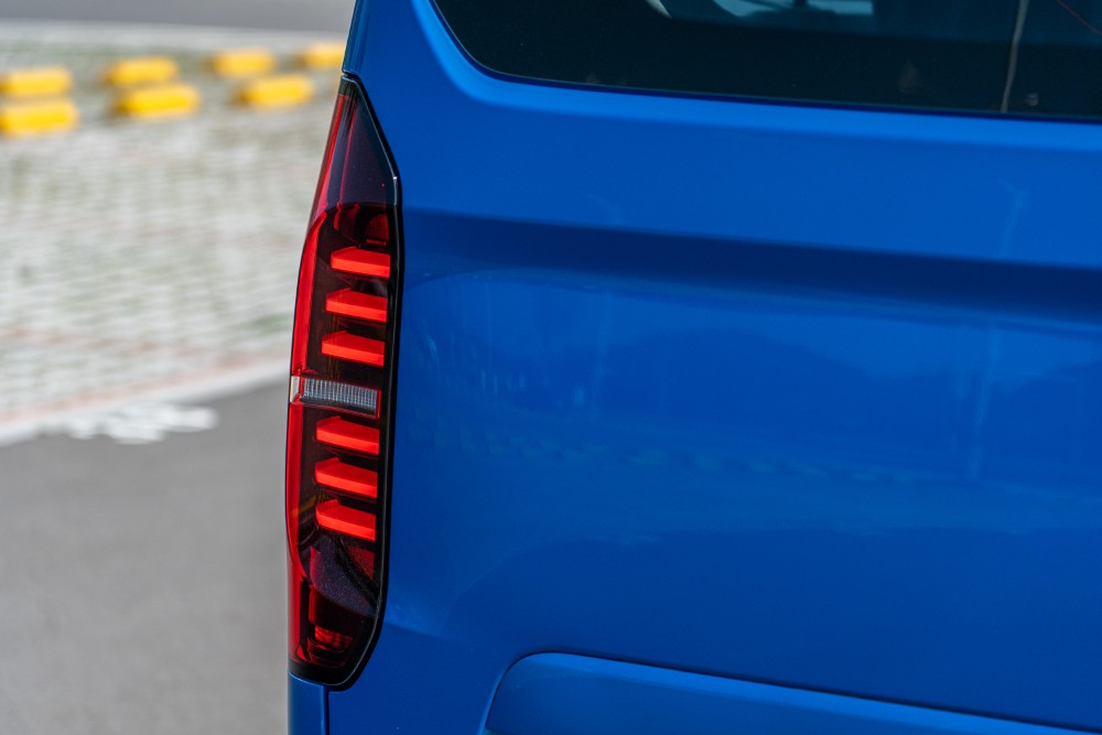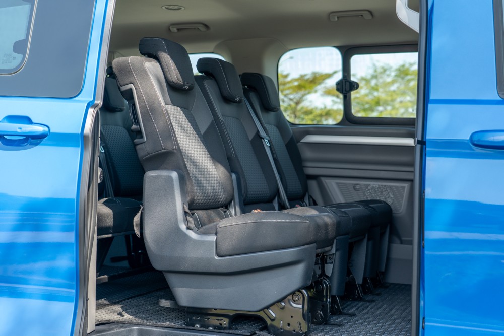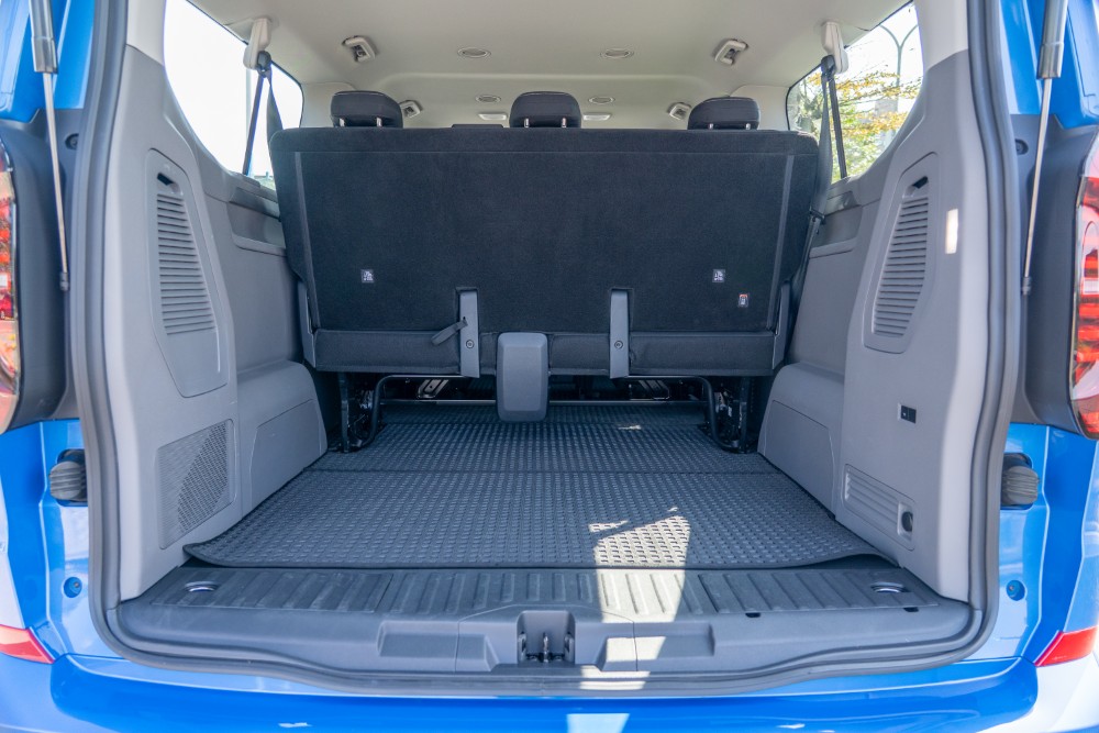 針對載運需求,Caravelle 的後艙空間展現了極高的酬載能力,本車標配了上掀式尾門含電子開啟功能,尾門開啟後呈現的方正開口與低矮的行李箱門檻,非常有利於堆疊大型行李箱。受惠於 3,500mm 的軸距,即使在全數載客的情況下,車尾仍保留了相當可觀的置物深度。此外,乘客艙也標配了手動側遮陽簾(包含於選配或特定包裝中),並且擁有全車高亮度 LED 閱讀燈與行李艙獨立照明裝置,確保了在夜間或是視線不佳環境下取放行李的安全性。