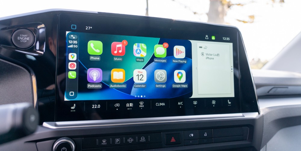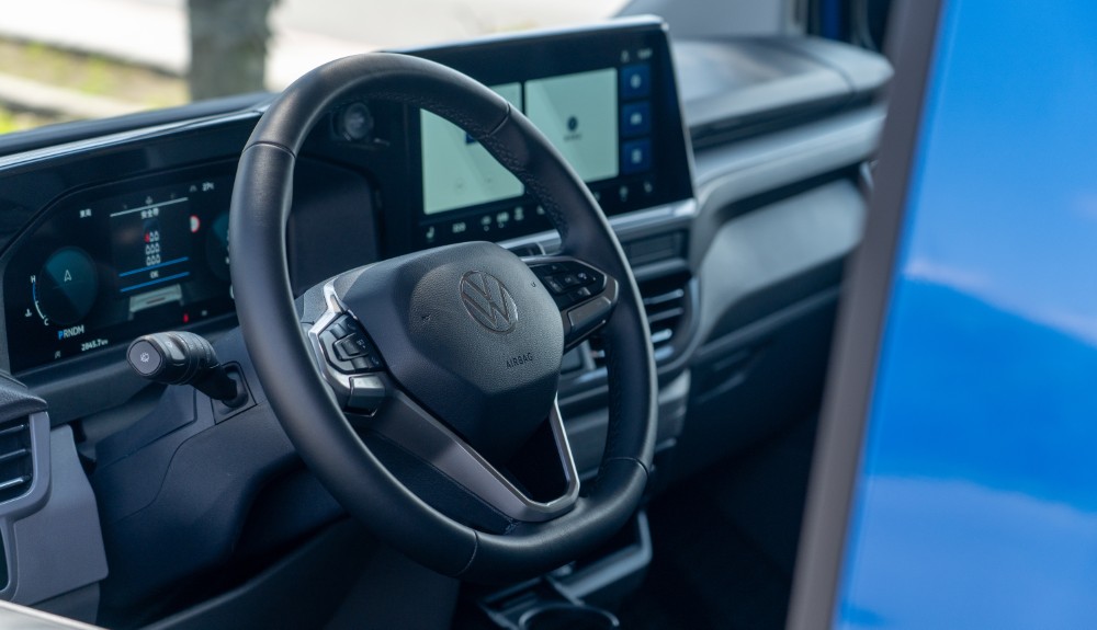 座艙最直觀的感受是操作介面的變革,福斯商旅為 Caravelle Life 170 導入了新世代數位化智能科技座艙,由 12 吋數位儀錶構成中樞,這具 12 吋數位儀錶能清晰地顯示各項行車數據與駕駛輔助狀態,駕駛者無需分心即可輕易掌握車輛動態。中控台中央則配置了 13 吋多媒體影音觸控螢幕,不僅在視覺上成為座艙焦點,操作邏輯也更趨近於現代智慧型裝置。透過整合的功能快捷鍵,駕駛者可以直覺地控制導航、通訊以及各項車輛設定。